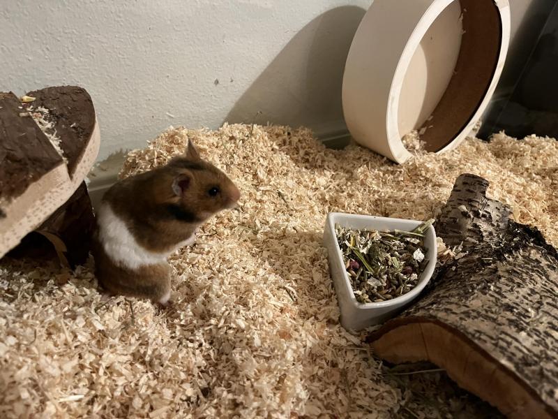 Junges Goldhamster-Weibchen mit Käfig und vielem Zubehör abzugeben.