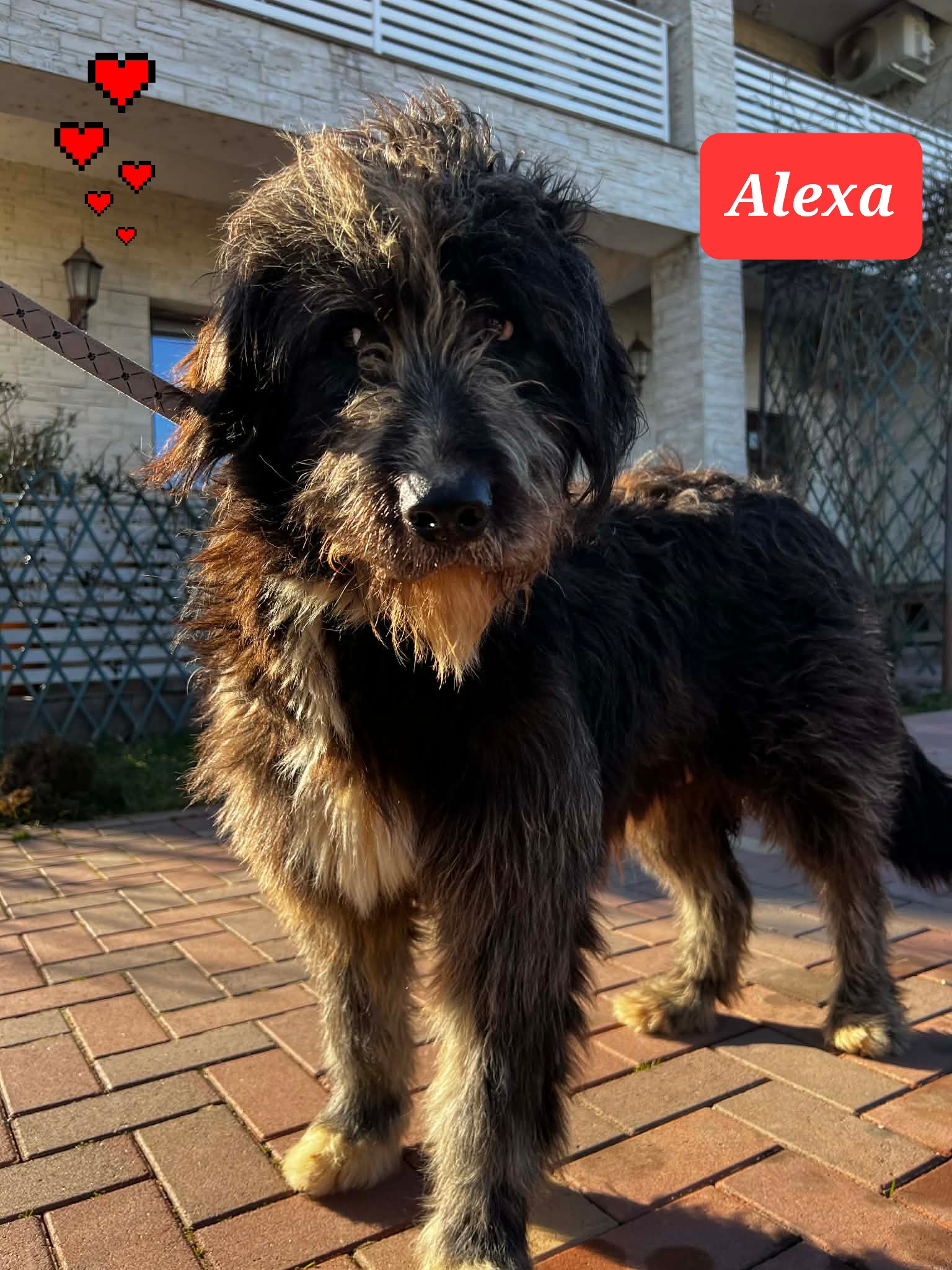 Alexa reist kastriert, gechipt, geimpft, auf Mittelmeekrankheiten, Herzwürmer und Gardien negativ getestet, mit Eu pass und nach positiver Vorkontrolle mit seriösem dogrescuetravel Transportunternehmen mit eigener Trace nummer in die Schweiz.