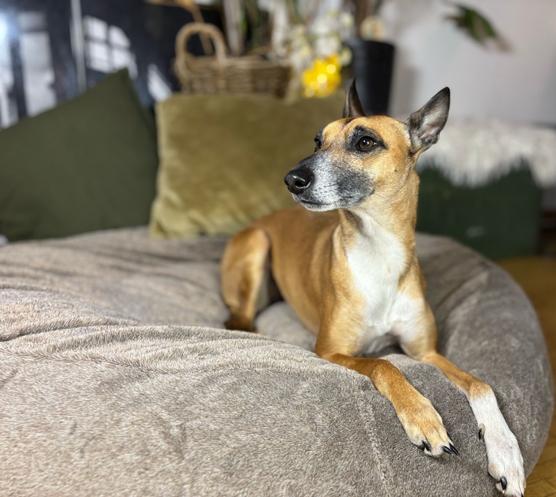 Ansa (17.1.21) ist eine lebhaft verspielte und anhängliche Hündin. Sie hat viel Energie und will körperlich wie auch geistig ausgelastet werden. Sie liebt es zu rennen, da kommt der Windhund in ihr durch und sie apportiert leidenschaftlich gut und gerne. Ansa ist mit ihren neun Kilos eine zarte Hündin, welche ein stabiles Umfeld sucht. Im Alltag benötigt sie viel Ruhe, Struktur und eine faire Führung. Zurzeit springt sie bellend in die Leine bei Hundebegegnungen oder sonstigen unerwarteten Situationen und zeigt Leinenaggression. Zuhause ist sie eine wunderbare ruhige Lady, welche gerne im Bett, in kuscheligen Decken eingepackt und am besten nahe an ihrem Menschen schläft. Eine Kuschelmaus eben.