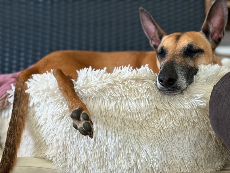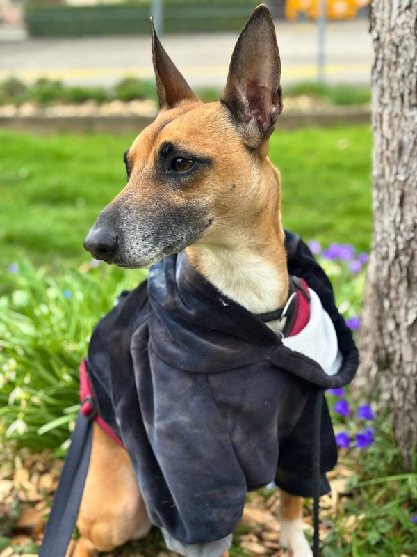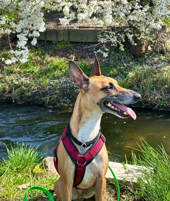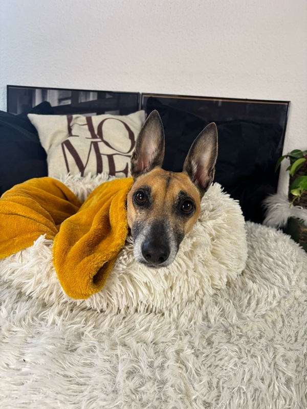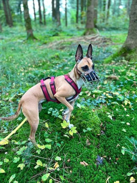 Ansa (17.01.2021) ist eine lebhaft verspielte und anhängliche Hündin mit sehr viel freudiger Lebensenergie. Sie liebt es zu rennen, da kommt der Windhund in ihr durch und sie apportiert leidenschaftlich gut und gerne. Ansa ist mit ihren neun Kilos eine zarte Hündin, welche ein liebevolles Umfeld sucht. Im Alltag benötigt sie Ruhe, Struktur und eine faire Führung. Bei Hundebegegnungen oder sonstigen unerwarteten Situationen springt sie bellend in die Leine und pöbelt. Daher trägt sie draussen einen Maulkorb. Zuhause ist sie eine wunderbare ruhige Lady, welche gerne im Bett, in kuscheligen Decken eingepackt und am besten nahe an ihrem Menschen schläft. Eine Kuschelmaus eben.
