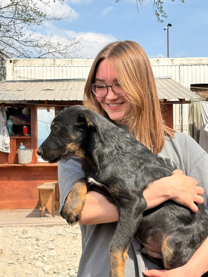 Der junge Rüde wird vermutlich einmal mittelgroß bis größer werden. Momentan ist er einfach ein fröhlicher, neugieriger Welpe, der die Welt entdecken möchte. Besonders liebt Ansgar zwei Dinge: spielen und kuscheln. Erst wird ausgelassen herumgetobt, und kurz darauf sucht er schon wieder die Nähe zum Menschen, um sich anzuschmiegen.