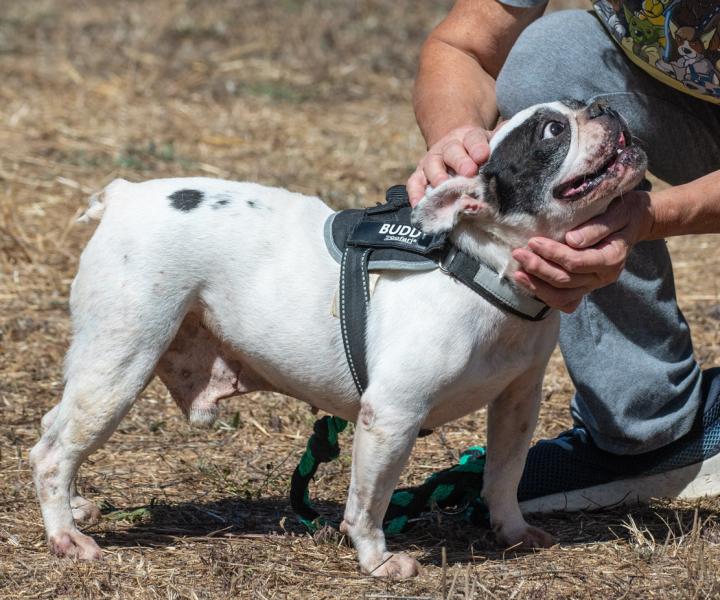 Dürfen wir vorstellen, Balou, eine reinrassige Französische Bulldogge, Rüde, geboren 2017, mit einer Schulterhöhe von 38 cm. Balou wurde von seinem Besitzer ohne Angabe von Gründen im Tierheim abgegeben, wo er zurzeit in Portugal lebt.