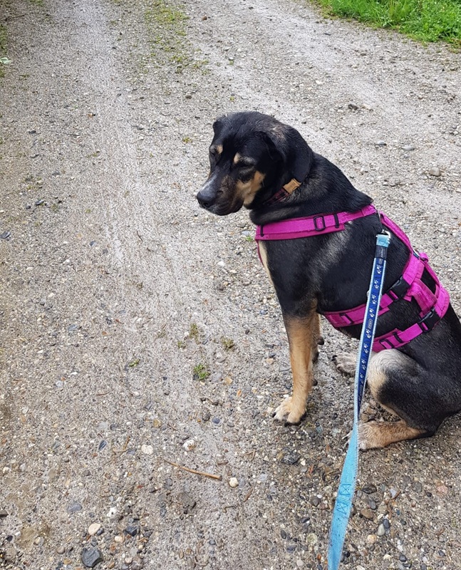 Hat sie Vertrauen gefasst, zeigt sich Bella verspielt, neugierig und voller jugendlicher Energie. Sie liebt gemütliche Spaziergänge, plantscht begeistert im Wasser und probiert gerne neue Dinge aus, sei es eine Leckerli-Suche oder das Balancieren über Baumstämme.