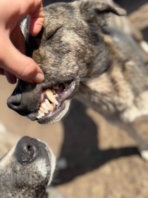 Benny, geboren ca. 01/2023, kastriert, Schulterhöhe ca. 50 cm, im Shelter seit 04/2023Benny ist einer von 20 Welpen, die ausgesetzt gefunden wurden. Bis zur Grundimmunisierung kamen die Welpen bei einer Privatperson in Valcea unter, mussten danach aber ins Shelter umziehen weil es keine andere langfristige Lösung gab. Mittlerweile ist Benny zu einem schönen jungen Rüden herangewachsen und hatte leider - ebenso wie sein Bruder Pepper - noch nie eine Anfrage. Er ist ein ausgesprochen freundlicher und lustiger Vierbeiner. Anfänglich ist er etwas schüchtern, dennoch sucht er gerne die Nähe von Menschen. Sobald er das Gefühl hat, diesen vertrauen zu können, himmelt er sie regelrecht an und würde am liebsten in sie hineinkriechen. Im Zusammenleben mit anderen Hunden erweist er sich ebenfalls als sehr freundlich und zugewandt. Er geht schon gut an der Leine und wird sicherlich eine tolle Bereicherung für seine zukünftige Familie. Leider fiel beim letzten Besuch unserer Volontäre auf, dass Benny stark abgenommen hatte und insgesamt mit stumpfem Fell und Apathie überhaupt keinen gesunden Eindruck machte. Bei der darauf folgenden Untersuchung stellte sich heraus, dass er einige stark entzündete Backenzähne und entzündetes Zahnfleisch hatte. Er wurde einzeln gesetzt, behandelt und zwei seiner Zähne in einer Operation gezogen. Davon hat er sich mittlerweile gut erholt und nimmt bereits wieder zu. Leider wird der Stress im Shelter eine große Rolle bei der Entstehung dieser Probleme gespielt haben, einige Hunde leiden einfach sehr und dies sorgt für gesundheitliche Baustellen. Daher suchen wir für Benny ganz dringend eine Familie, die ihn dem stressigen Shelteralltag entfliehen lässt, bevor er weiter abbaut.