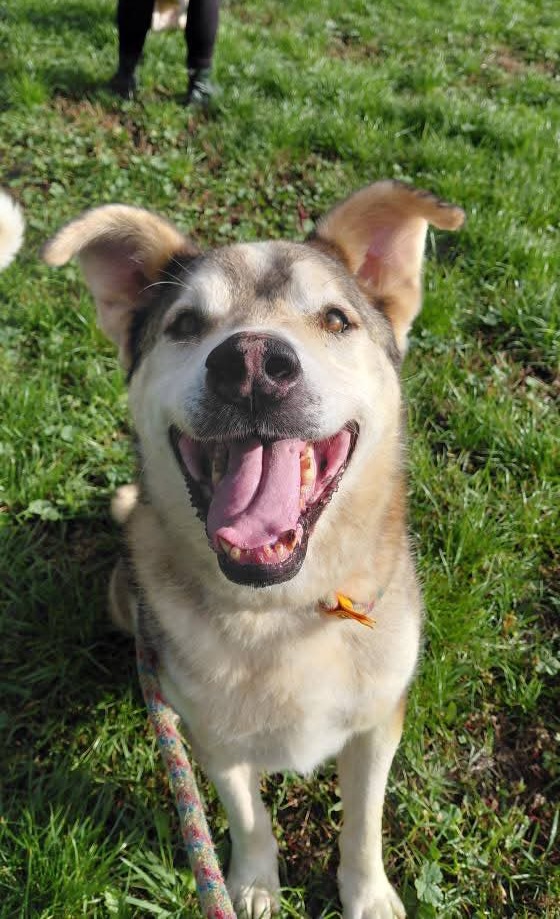 "Bond ist ca 6 Jahre alt und der absolute Schatz des Shelters, obwohl mit 70cm Schulterhöhe und 42 kg ein großer Kerl ist er sehr sanft im Umgang, freundlich, lustig und absolut vertrauenswürdig."