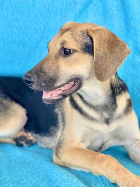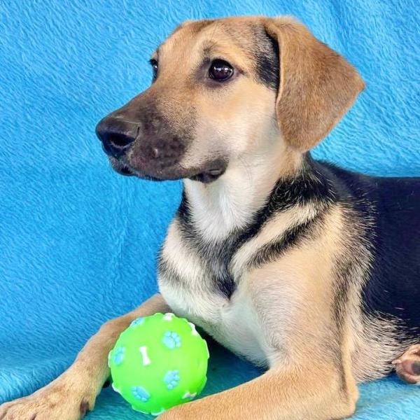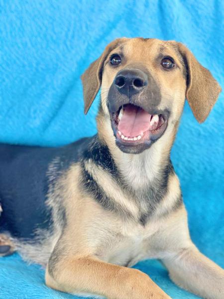 Der fünf Monate alte Welpe ist voller Lebensfreude und liebt es zu spielen, sehnt sich aber auch nach Kuschelzeit mit seinen Menschen. Er ist von Natur aus anhänglich und liebt es, in der Nähe seiner Menschen zu schlafen. Er ist sehr freundlich zu neuen Menschen und spielt gerne mit seiner Schwester und den anderen geretteten Hunden und Katzen. Dieser kleine Champion ist bereit, für seine für-immer-Familie.