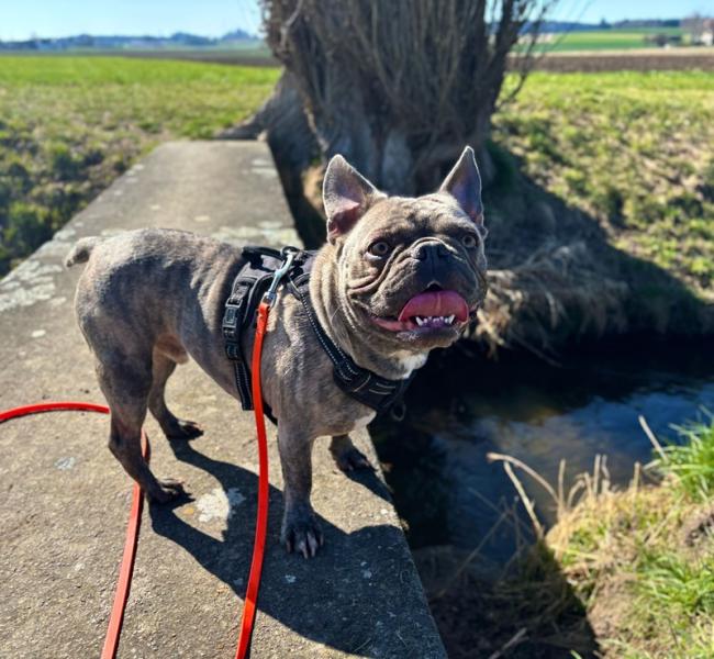 Bubi (31.07.21) ist ein sensibler, französischer Bulldoggenjunge, welcher, sobald er Vertrauen gefasst hat, ein lustiger und verschmuster Begleiter ist. Er mag lange und spannende Spaziergänge, entdeckt gerne die Natur. Bubi wir gerne gefördert, ob es auf einen Baumstamm hopsen oder queer durch den Wald laufen ist.