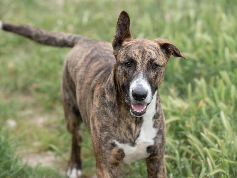 Dürfen wir vorstellen: Das ist Buddy, ein Bullterrier-Schäferhund-Mischlingsrüde, der ein Zuhause sucht. Buddy wurde ca. im März 2024 geboren und misst ungefähr 55cm Schulterhöhe.