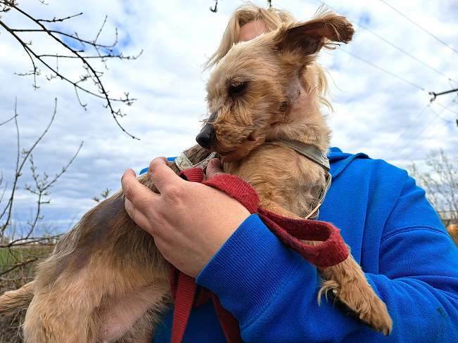 Mitte März 2026 erhielt die Tierheimleiterin Kata einen Anruf von einer Frau, die berichtetet, dass sie und ihre Kinder eben 3 völlig verwahrloste kleine Hunde in einem Waldstück gefunden hätten. Sofort machten sich 2 Heimmitarbeiter auf den Weg zum angegebenen Ort, wo die Mutter mit ihren beiden Töchtern bei den Hunden gewartet hatte. Was für ein Glück für die 3 Hundchen, dass sie auf diese tierlieben Menschen gestoßen waren, die nicht wegschauten, sondern sich kümmerten. Und das hatten die drei auch dringend nötig, denn sie befanden sich in einem furchtbaren Zustand.