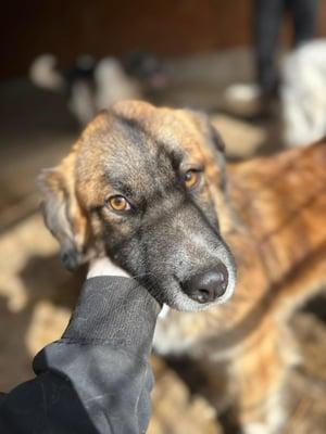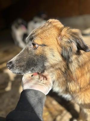 Edda ist eine mittelgroße Hündin (ca. kniehoch) mit einem ganz besonderen Zauber. Anfangs zeigt sie sich ein wenig vorsichtig, doch sobald sie Vertrauen gefasst hat, genießt sie die Nähe zu Menschen sehr. Streicheleinheiten und ruhige Zuwendung bedeuten ihr viel – dann blüht sie richtig auf.