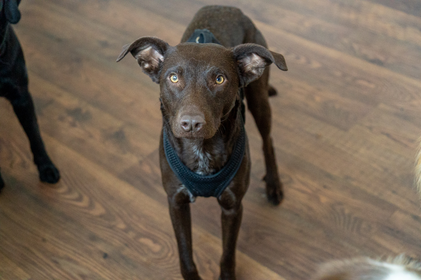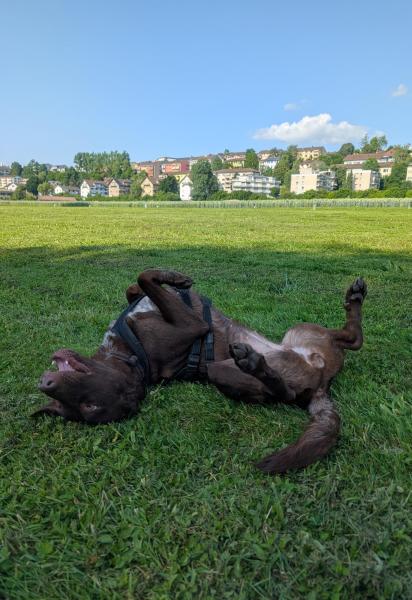 Ellie orientiert sich stark an ihren Menschen und liebt es, auf Spaziergängen die Welt zu erschnüffeln. Sie lernt unglaublich schnell und hat grosse Freude daran, Neues auszuprobieren. Bei Hundebegegnungen bleibt sie ruhig – kommt ein anderer Hund jedoch zu nahe, reagiert sie manchmal mit nervösem „Spielverhalten“. Die Grundkommandos sowie der Rückruf funktionieren zuverlässig, dennoch sollte man wissen, dass sie eine gewisse jagdliche Motivation mitbringt.