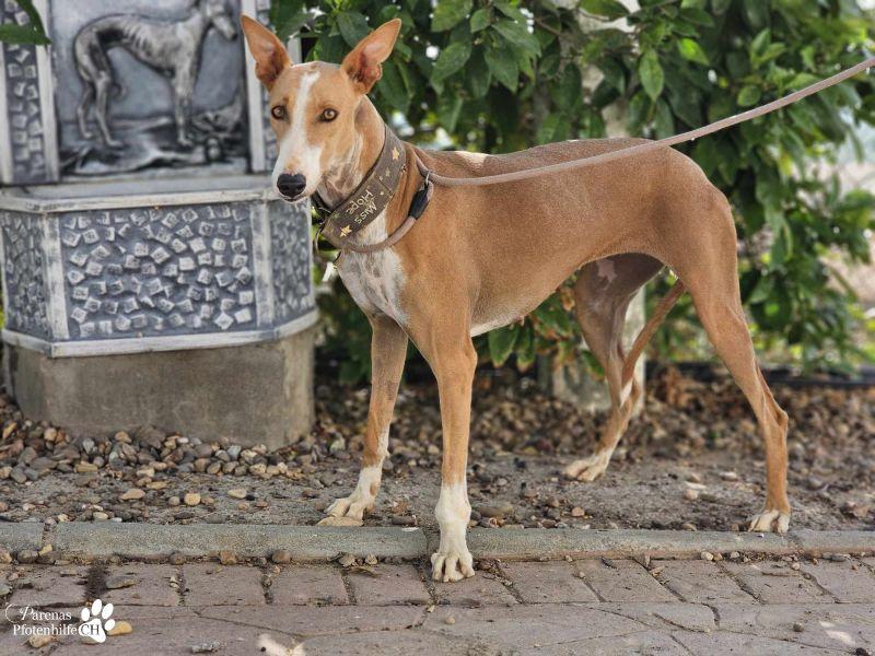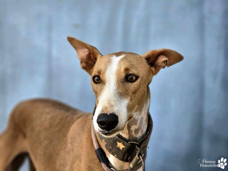 Elu, ein bunter Galgomix, ist schon optisch ein Highlight. Die viel wichtigeren inneren Werte können sich aber auch sehen lassen. Das aktive, verschmuste und fröhliche Mädchen braucht anfangs etwas Zeit, um ihr Wesen voll zu entfalten, aber dann öffnet sie sich relativ schnell. Und danach gibt es kein Halten mehr für die menschenbezogene Maus.