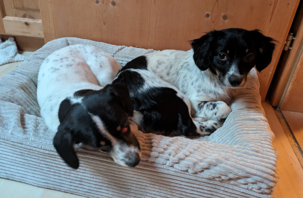 Bericht der Pflegestelle vom 24.11.2025: "Elika und Envi sind zwei Schwestern, die vom Charakter her unterschiedlicher nicht sein könnten. Sie ergänzen sich wunderbar. Es sind sehr brave Mädchen, eher von der ruhigeren Sorte. Sie haben ihre Momente, in denen sie spielen und herumtoben, schlafen dann aber auch wieder sehr gerne.