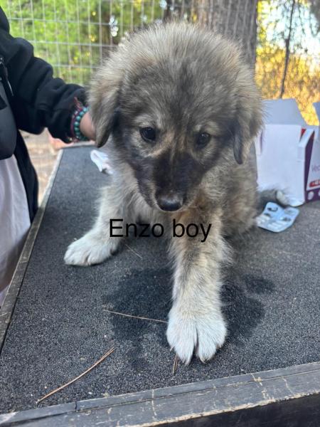 Nun, in Sicherheit und umsorgt, entdeckt Enzo die Welt mit großen Augen und einem sanften Herzen. Er ist ein neugieriger, liebevoller Welpe, der Menschen und andere Hunde gern um sich hat, auch wenn vieles für ihn noch neu ist.