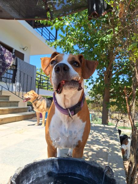 Unsere liebe Faith hat in ihrem kurzen Leben schon viel erlebt. Sie wurde in der Nähe eines Fußballplatzes in einem kleinen griechischen Dorf gefunden, direkt in der Nähe des Tierheims Hopeland. Als Natasa, die Managerin von Hopeland, Faith völlig verängstigt dort antraf, war klar, dass etwas nicht stimmte. Es scheint, dass Faith einfach mit einem gebrochenen Kiefer ausgesetzt worden war. Als wir sie fanden, funktionierte ihr Mund nicht – sie konnte nicht ohne Schmerzen essen oder bellen. Glücklicherweise wurde Faith direkt nach Hopeland gebracht, wo sie sofort die medizinische Hilfe bekam, die sie brauchte. Seitdem musste unser tapferes Mädchen einen langen Weg zurücklegen. Faith hat schon so viel überwunden, aber jetzt hat sie sich gerade ihrer vierten Operation unterzogen. Eine entzündete Drüse in ihrem Mund hatte einen schmerzhaften Knoten gebildet, der entfernt werden musste. Die Operation rettete sie zwar, ihr Mund blieb jedoch schief – eine sichtbare Narbe der Kämpfe, die sie ausgefochten hat. Aber Faith lässt sich nicht von ihren Narben definieren.