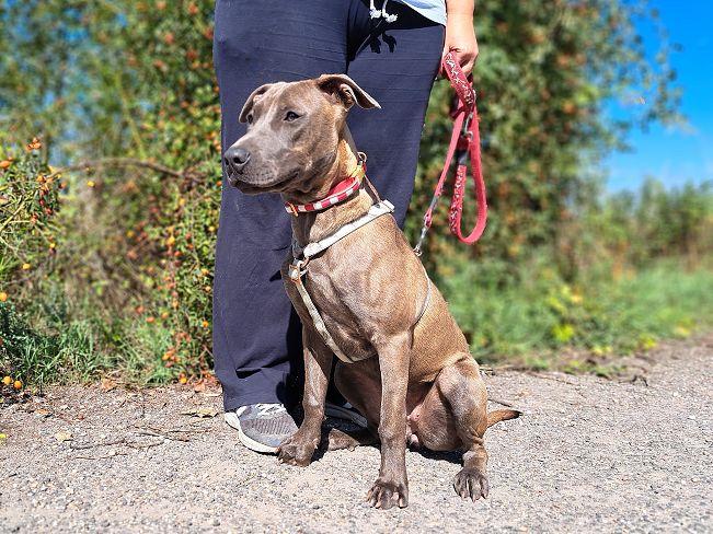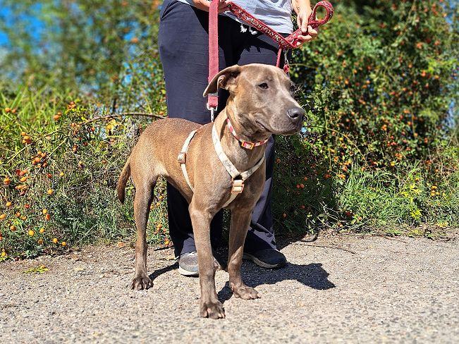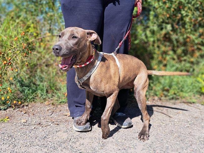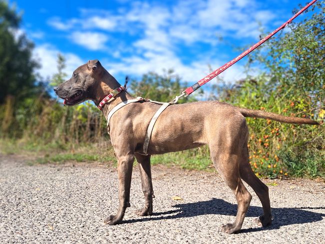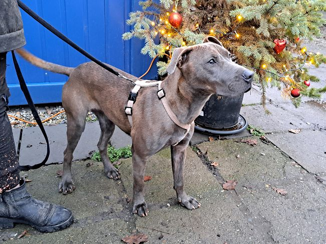 Mit ihren Artgenossen kommt sie im Auslauf wunderbar zurecht und freut sich, mit diesen herumzuflitzen. Nur draußen an der Leine bellt sie andere Hunde im Moment noch an. Hier braucht sie einfach noch etwas Routine mit der Situation. Doch sie ist noch so jung und auch sehr schlau, so dass sie noch alles lernen kann.