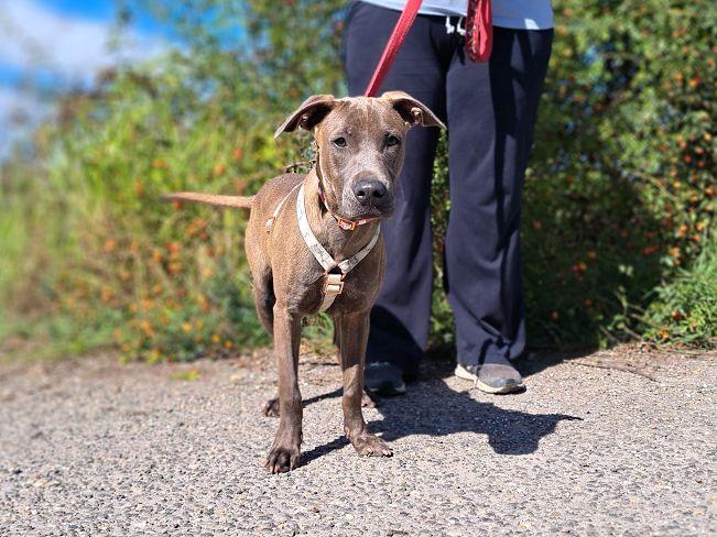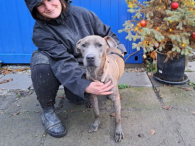 Die geschätzt im März 2025 geborene Farah streunte Ende August 2025 auf einem Campingplatz herum und suchte augenscheinlich den Kontakt zu den Menschen, von denen sie sich wohl Hilfe erhoffte. Und diese bekam sie zum Glück auch, denn ein tierliebes Pärchen informierten das Tierheim, so dass das Welpenmädchen in Sicherheit gebracht werden konnte.