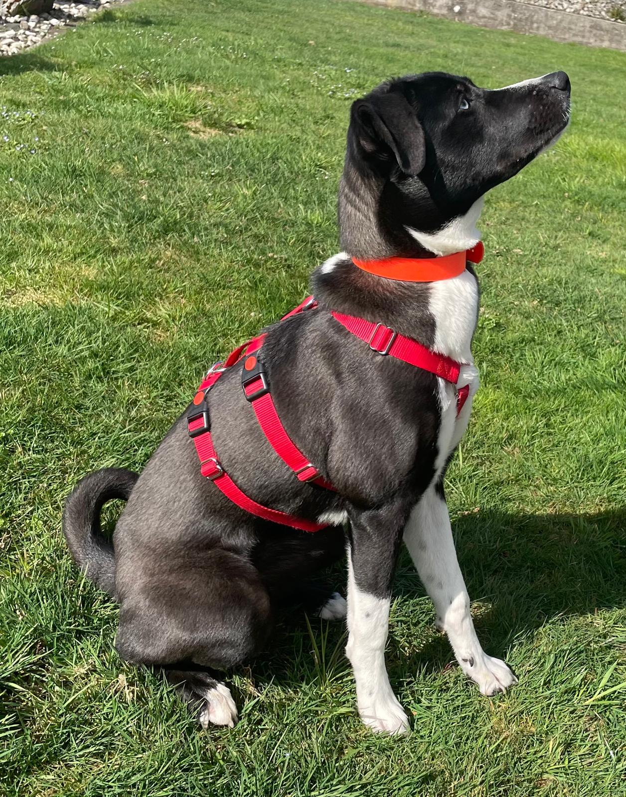 Fina ist eine eher ruhige, freundliche, verschmuste und menschenbezogene Hündin, die gerade in der Pubertät ankommt und daher eine sehr konsequente, liebevolle und geduldige Führung und Anleitung benötigt. Im häuslichen Umfeld zeigt sie sich zurzeit aufmerksam, wachsam und teilweise auch etwas bellfreudig. In unvertrauter Umgebung ist sie eher vorsichtig und zurzeit noch etwas unsicher unterwegs und braucht daher viel Sicherheit von ihrer Bezugsperson. Fina ist jedoch sehr neugierig, offen und lernfreudig und muss unbedingt beschäftigt und ausgelastet werden, sowohl körperlich als auch geistig. Sie ist mit grossem Eifer beim Training dabei und ist gut lenkbar. Gerade an den Basics, an Impulskontrolle und Frustrationstoleranz sollte unbedingt mit der sanften Fina weitergearbeitet werden.