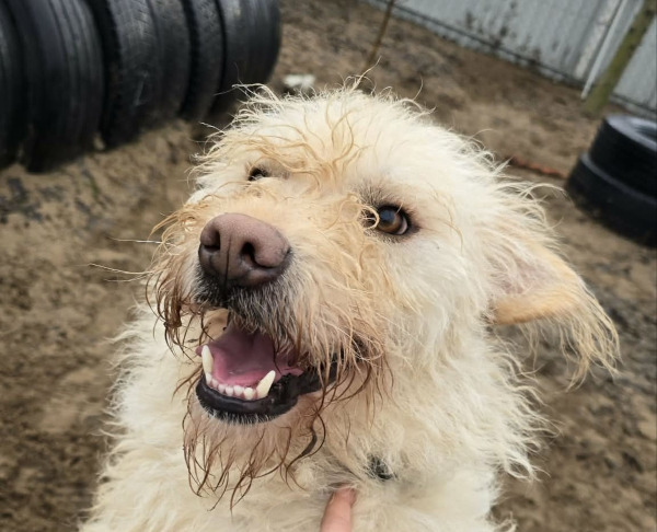 Im 25.9.2025 schreibt eine freiwillige, ungarische Helferin: "Flavio kam im Mai 2025 ins Tierheim. In seinem Steckbrief steht: Er nahm an einem Sozialisierungstraining teil und hat bereits einen weiten Weg zurückgelegt. Vieles muss er noch lernen. Er mag alle Menschen, nähert sich ihnen aber vorsichtig und langsam.Im September durften wir Flavio am Mentortag auf dem Spielplatz des Tierheims kennenlernen. Sein erstes Treffen mit den Mentoren verlief sehr gut. Flavio ist ein lieber, herziger und freundlicher Hund. Nach einer anfänglichen kleinen Unsicherheit näherte er sich von selbst. Als er spürte, dass die Mentoren ihm liebevoll begegneten, genoss er die Streicheleinheiten und die Zuwendung.