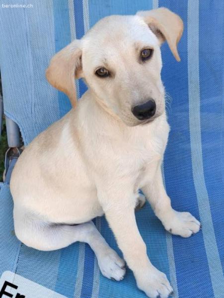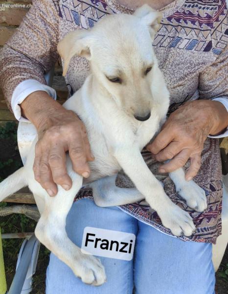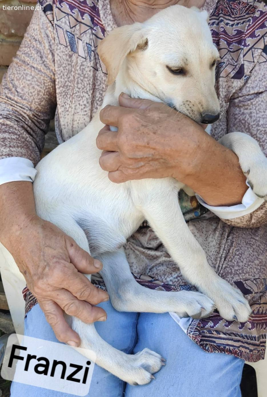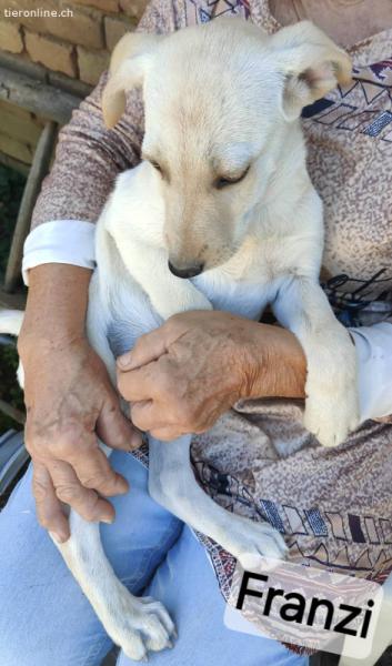 Die kleine Franzi ist ein helles, fröhliches Welpenmädchen, das auf der Suche nach einem liebevollen Zuhause ist. Sie wird einmal etwa kniehoch werden – also eine handliche, aber aktive Begleiterin fürs Leben.