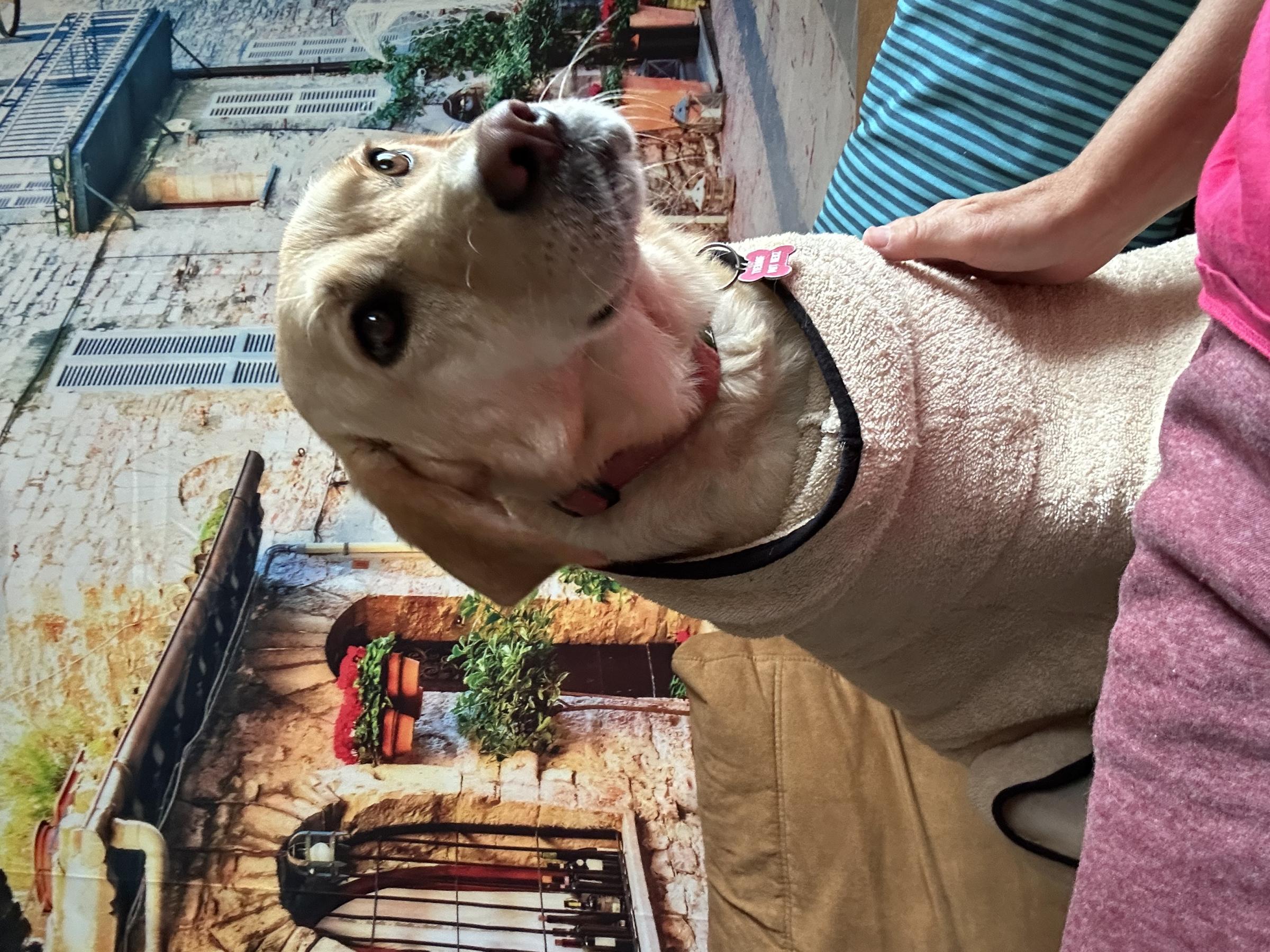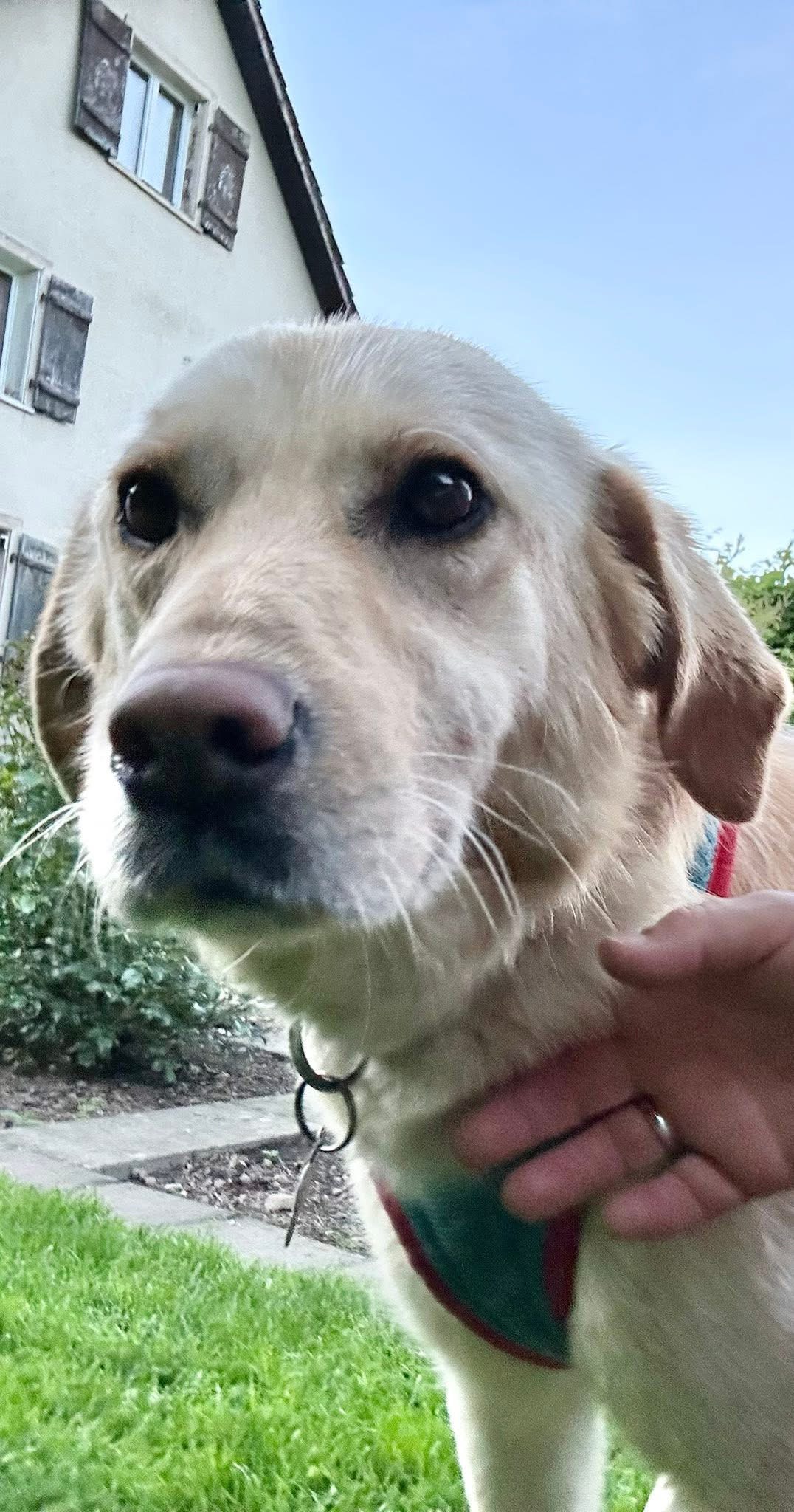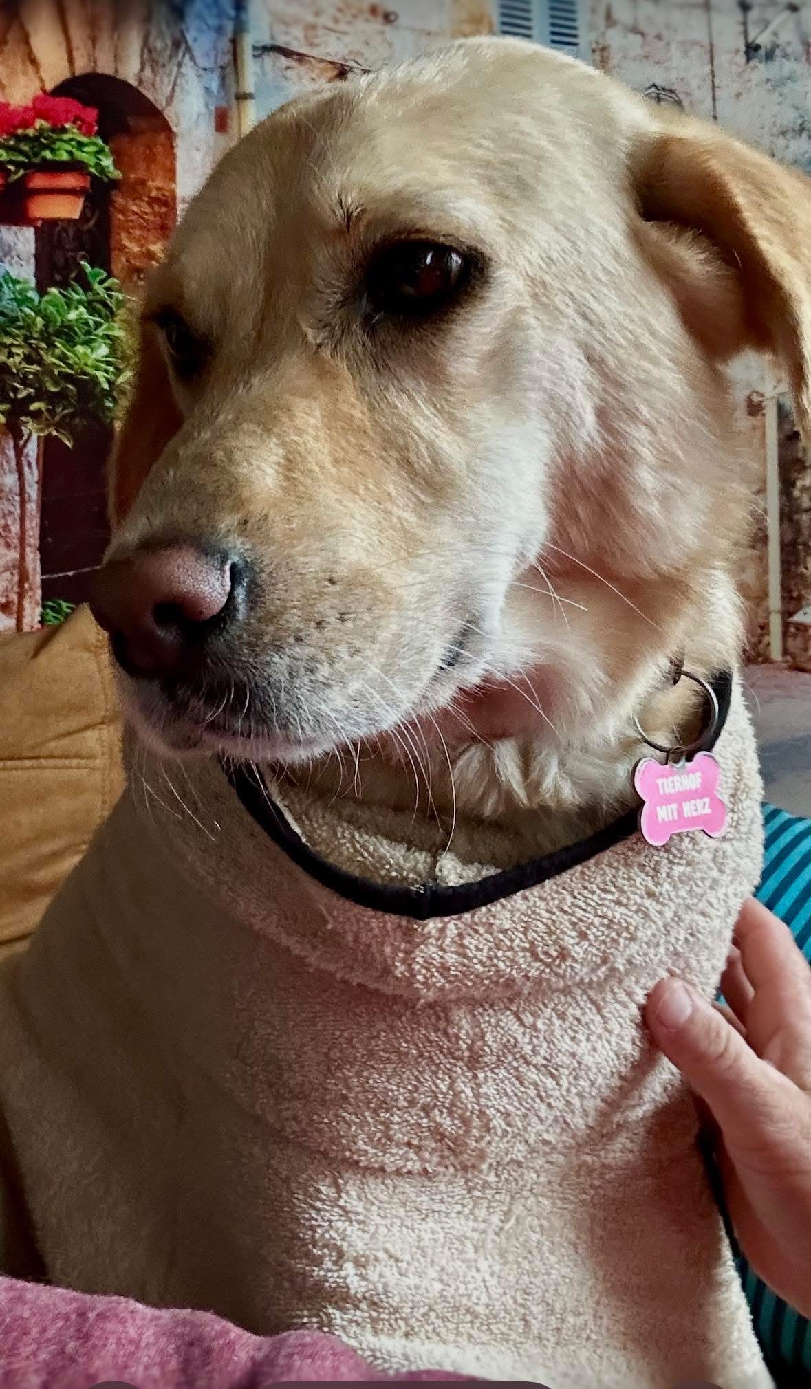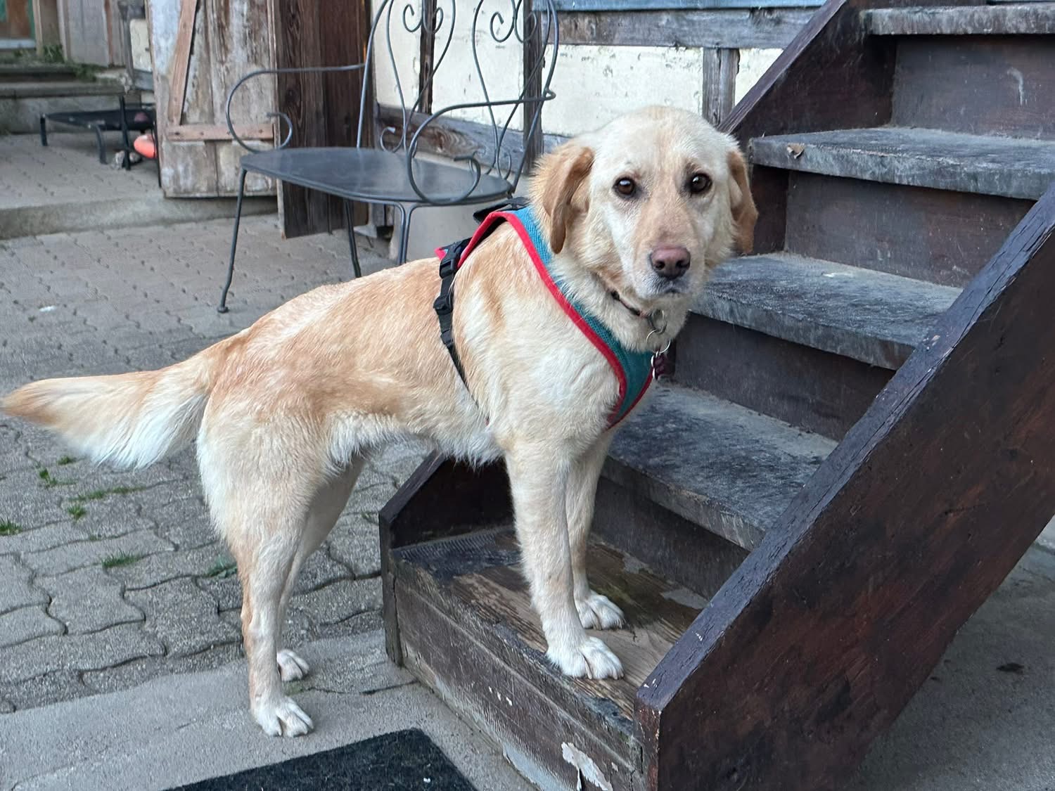 So ein treuherziger Blick und eine so anhängliche und feinfühlige Seele hab ich selten erlebt! Gina winselt bei jeder Begrüssung und sucht sofort Streicheleinheiten. Gina wird auf 4 Jahre geschätzt, ist kastriert, ca 50 cm gross und sieht einer Retriever Hündin sehr ähnlich.
