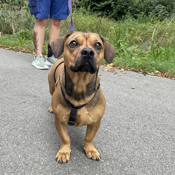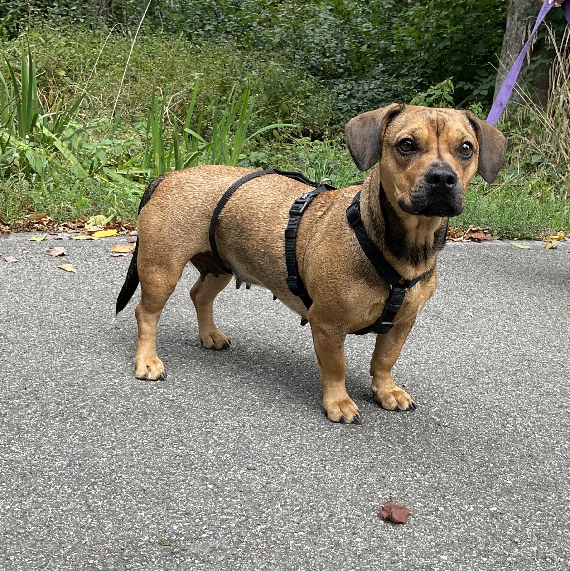 Gitti, die Dackelmix Hündin, ist am 21.4.2021 in Ungarn geboren, sie bringt bei 32cm 11.3kg auf die Waage.