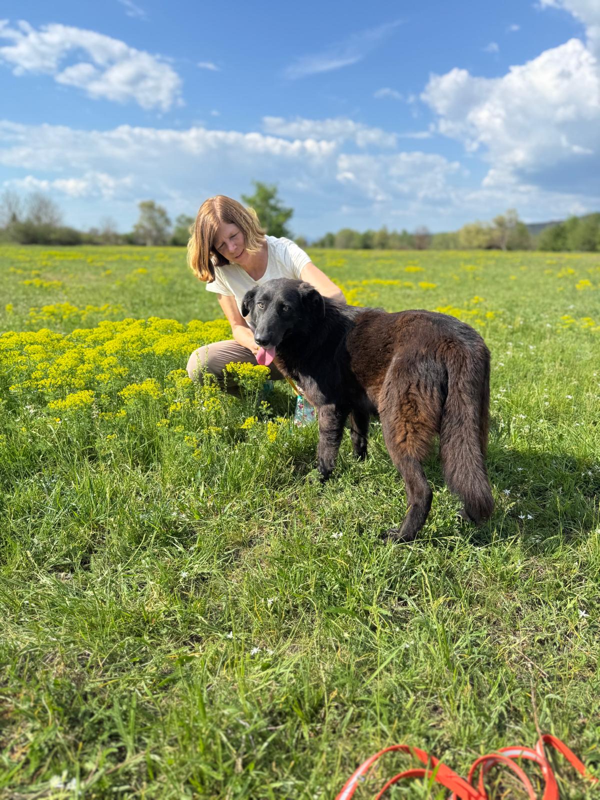 Rodica beschreibt die Hündin als kontaktfreudig und doch zurückhaltend – zumindest am Anfang. Sie versteht sich gut mit ihren Artgenossen. Wie sie sich gegenüber kleinen Kindern und Katzen verhält, können wir leider nicht beurteilen.