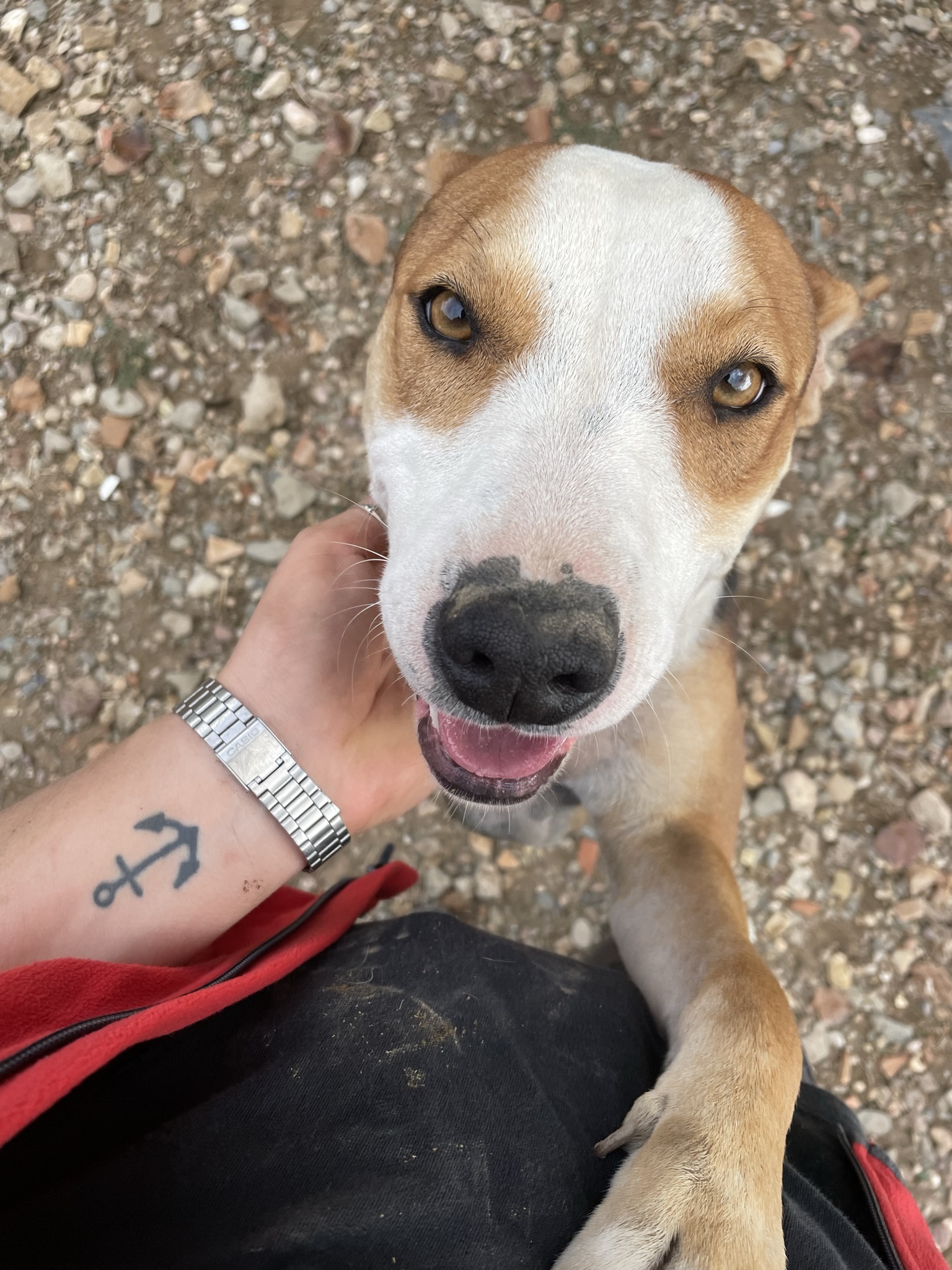 Die etwa zwei Jahre junge Hilde steckt voller Lebensfreude, Neugier auf die Welt und guter Laune. Sie ist Menschen gegenüber sehr freundlich und genießt die Zeit, die die Helferinnen und Helfer mit ihr verbringen. Auch mit anderen Hunden hat es bislang keine Probleme gegeben.