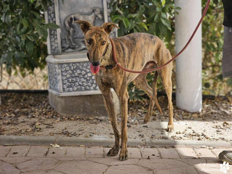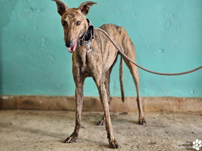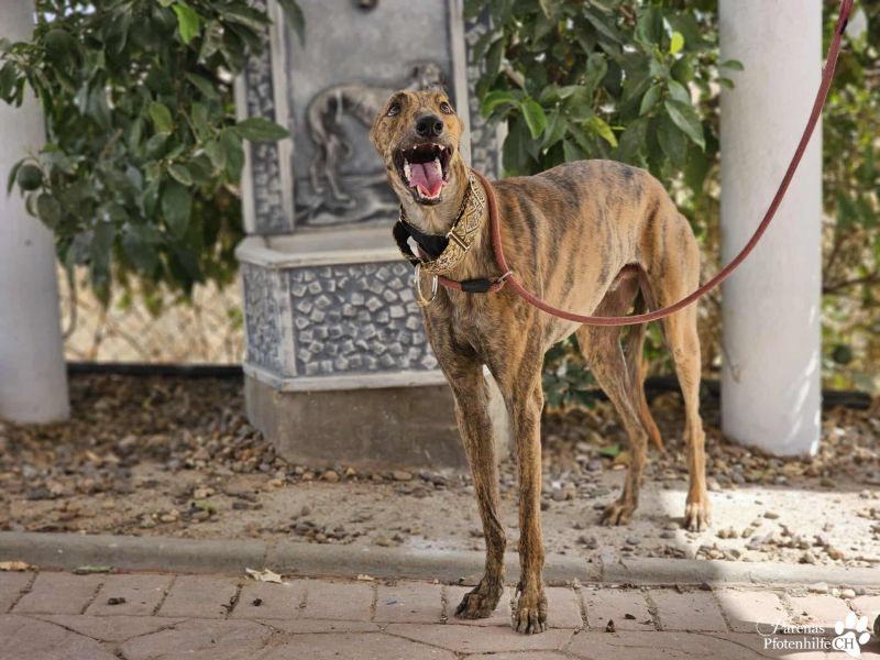 Hinoki ist ein eleganter Galgorüde mit Marmorkuchen-Optik. Anfangs ist der Hübsche manchmal noch etwas schüchtern, doch bald zeigt er sich als fröhlicher, verschmuster Zeitgenosse. Konflikten geht er als friedfertiger, junger Mann eher aus dem Weg, sodass er sich mit Hunden aller Größen und sogar Katzen gut verträgt. Neugierig auf die Welt und ein eigenes Zuhause wartet Hinoki nun darauf, von seiner Familie entdeckt zu werden.
