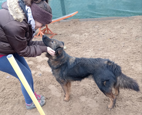 Am 26.11.2025 schreibt eine freiwillige, ungarische Helferin: "Kalina kam Ende September 2025 in die Obhut des Tierheims. Sie kam ängstlich an und nahm an einem Sozialisierungstraining teil. Am Mentortag lernten wir sie auf dem Spielplatz des Tierheims kennen.