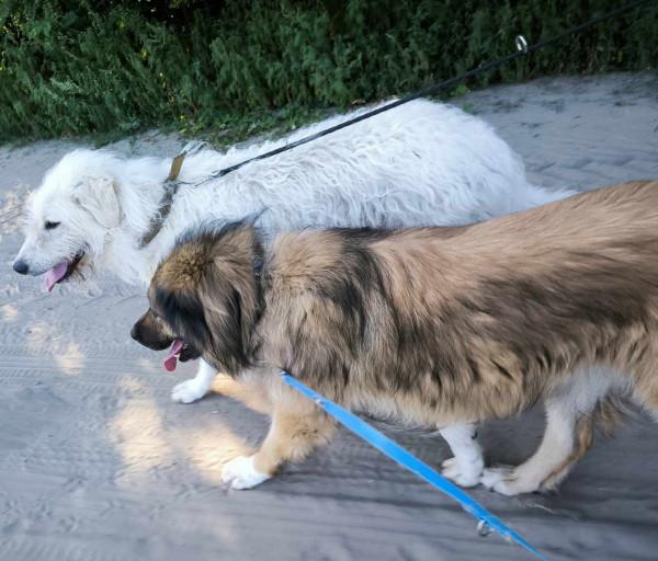 Karenina ist ein ausgeglichener Hund und geht sehr schön an der Leine. Während der Spaziergänge verhält sie sich in allen Situationen ruhig. Nur Rehe oder Wildschweine, die sie während des Spaziergangs sieht, bringen sie kurz aus der Ruhe. Bisher spazierte sie regelmässig mit Jenci, in letzter Zeit geht sie mit dem Nachbarzwingerhund Rotring spazieren. Sie ist also gut mit anderen Hunden verträglich."