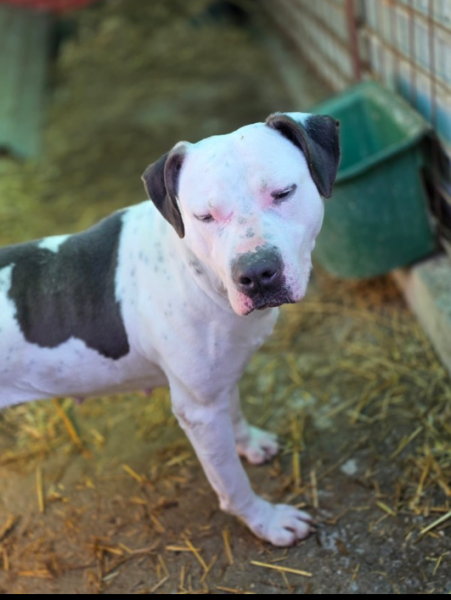 Kim wurde zusammen mit ihrem kleinen Welpen von einem anderen Tierheim übernommen und lebt nun in Marias Shelter. Sie ist eine freundliche, verschmuste Hundedame mit einem großen Herz – und ein echtes Kraftpaket. Sie ist sehr menschenbezogen, aktiv, verspielt und zeigt sich typisch Staffy: freundlich, energiegeladen und mit viel Lebensfreude. In ihrem früheren Leben im öffentlichen Shelter hat Kim jedoch viel durchgemacht – zahlreiche Narben an ihrem Körper zeugen von einer schweren Vergangenheit. Trotz allem hat sie sich ihre Offenheit und Zuneigung zu Menschen bewahrt und genießt jede gemeinsame Minute – sei es beim Spazierengehen, Kuscheln oder Spielen. Mit anderen Hunden kommt sie in der Regel gut zurecht, allerdings sollten in ihrem neuen Zuhause keine kleinen Hunde leben. Beim Spielen reagiert sie nicht besonders sensibel auf die Größe ihrer Spielpartner, sodass es vorkommen kann, dass sie kleinere Hunde versehentlich „überrollt“, als wären sie ebenso groß wie sie selbst. Sie hat eine Schulterhöhe von ca. 50-60cm. Vermutlich steckt etwas Staffordshire Bullterier in ihr - das können wir nicht mit Sicherheit sagen, können es aber anhand der Optik vermuten. Dies muss bei der Einfuhr in ein neues Zuhause beachtet werden. Wir wünschen uns für sie ein liebevolles und geduldiges Zuhause, in dem man ihr mit Ruhe, Fairness und Einfühlungsvermögen die Grundlagen eines erfüllten Hundelebens vermittelt. Befindet sich aktuell in Rumänien und darf ausreisen, wenn sie ein Zuhause gefunden hat. Reist gechipt und geimpft (EU Impfpass; Impfungen: Tollwut und Grundimmunisierung). Alle Hunde werden bei ihrer Ankunft im Shelter sowie anschließend mindestens einmal jährlich gegen Darmparasiten und Ektoparasiten behandelt. Die geschilderten Verhaltensbeobachtungen basieren auf dem Alltag im Shelter und können sich in einem häuslichen Umfeld unter veränderten Lebensbedingungen entsprechend anders darstellen. Der Transport (angemeldet mit Traces) wird von uns, so weit es für das Bestimmungsland rechtlich möglich ist, organisiert und durchgeführt. Wir freuen uns sehr, dass Sie ein ernsthaftes Interesse an Kim haben. Füllen Sie dazu unbedingt die Selbstauskunft unter dem angegebenen Link aus, nur so können wir ihre Anfrage zügig bearbeiten. Besten Dank im Voraus, Ihr Team von Hope-For-Future e.V.