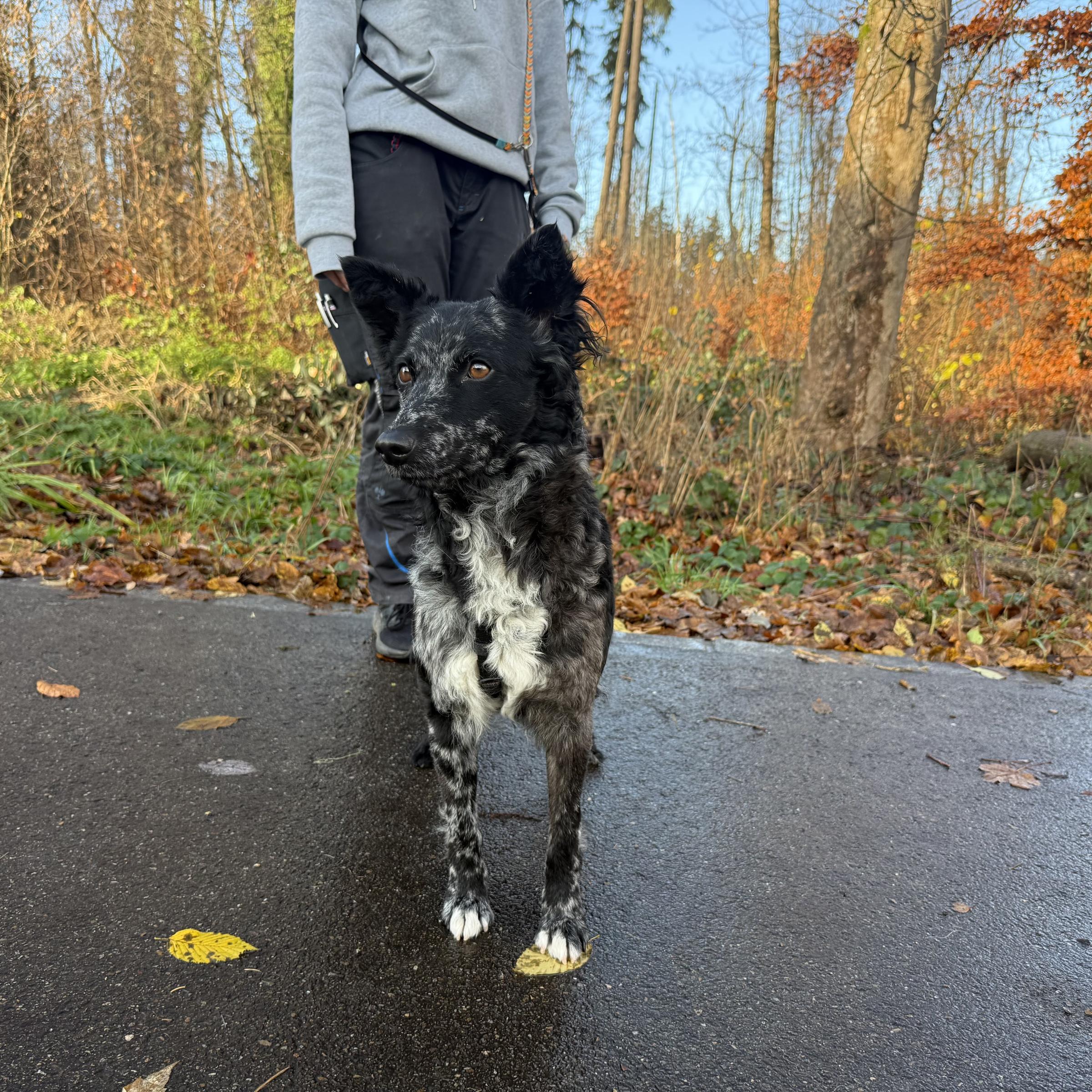 Kincsö ist eine aktive Hündin, welche gerne draussen ist, sie läuft bereits sehr gut an der Leine, allerdings muss man bei ihr aufpassen den sie tendiert dazu an der Leine zu Pöbeln. Neue Untergründe verunsichern sie manchmal noch etwas, sie gewöhnt sich aber schnell an alles neue. Auch ist Kinsö sehr verschmust und kricht am liebsten in die Menschen hinein.