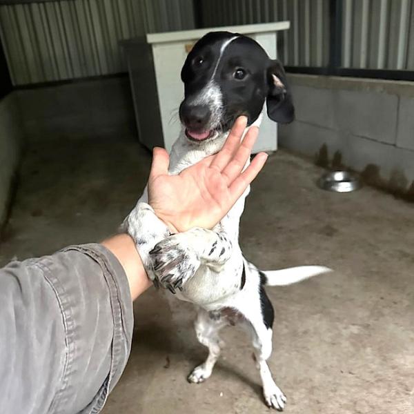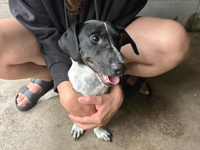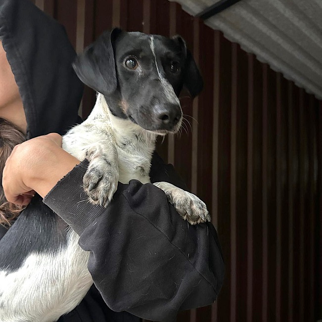 Anfang Juli 2025 erhielt Levente, der Mann der Heimleiterin Kata, einen Anruf. Ein Mann berichtete, ein Hund wäre ihm auf seinem Arbeitsweg bis zu dem Laden, in dem er arbeitet, gefolgt und würde nun nicht mehr weggehen. Als Levente dort ankam, ließ der ängstliche Rüde sich von ihm weder anlocken geschweige denn anfassen. So bat Levente den Mann zu versuchen, den kleinen Hundemann in die Transportbox zu stecken, was diesem auch recht problemlos gelang. So liegt die Vermutung nahe, dass es sich bei dem geschätzt im September 2024 geborenen Kony sehr wahrscheinlich um den eigenen Hund des Mannes handelte, der aber diese Notlüge erfand, vielleicht um sich nicht rechtfertigen zu müssen bzw. auch keine Kosten tragen zu müssen.
