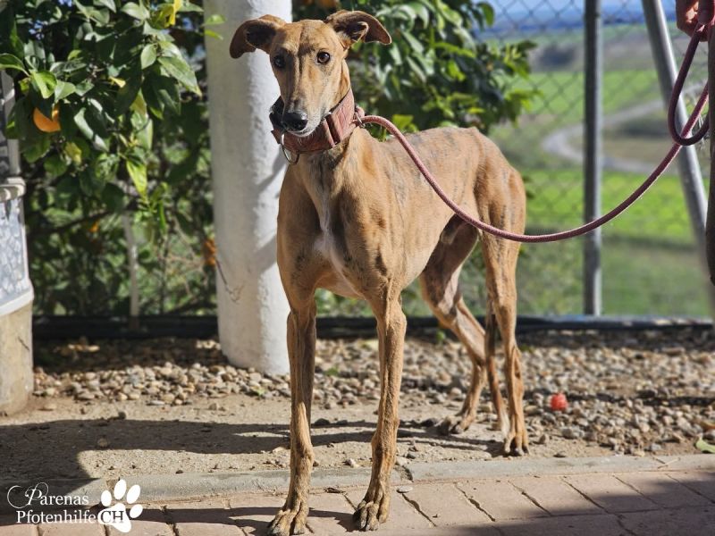 Lancelot ist ein sanfter Galgorüde, der mit seiner Art sofort Sympathie weckt. In der Hundegruppe bewegt er sich freundlich, ist sozial und meidet Konflikte. Gegenüber Menschen zeigt sich Lancelot anfangs vorsichtig und etwas zurückhaltend. Doch hinter dieser Schüchternheit steckt ein intelligenter und neugieriger Hund, der darauf wartet, Herzen zu erobern. Mit jedem Tag gewinnt er mehr Sicherheit, macht Fortschritte und kann die Nähe und das Streicheln durch das Team mittlerweile geniessen. Hat Lancelot erst Vertrauen gefasst, zeigt er sich zutraulich, freundlich und menschenbezogen. Seine stille Fröhlichkeit, kombiniert mit seiner sensiblen Art, macht ihn zu einem ganz besonderen Begleiter für Menschen, die ihm Zeit geben, um anzukommen.