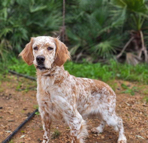 Die schön gezeichnete Englisch Setter Hündin Lara wohnt seit dem 20. November 2025 bei Monika im Refugio. Sie wurde auf der Strasse gefunden und ziemlich sicher ausgesetzt. Nun wartet die freundliche Lara bei Monika auf ihr für immer zu Hause. Im Zwinger, in der gemischten Gruppe, ist sie mit allen Artgenossen gut verträglich und drängt sich neugierig ans Gitter wenn Besuch kommt. Die wunderschöne Setterhündin zeigt sich offen, menschenbezogen und schon recht selbstsicher.
