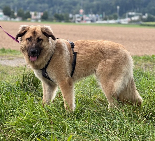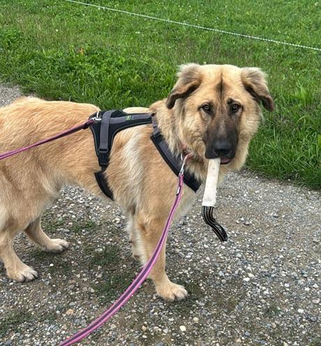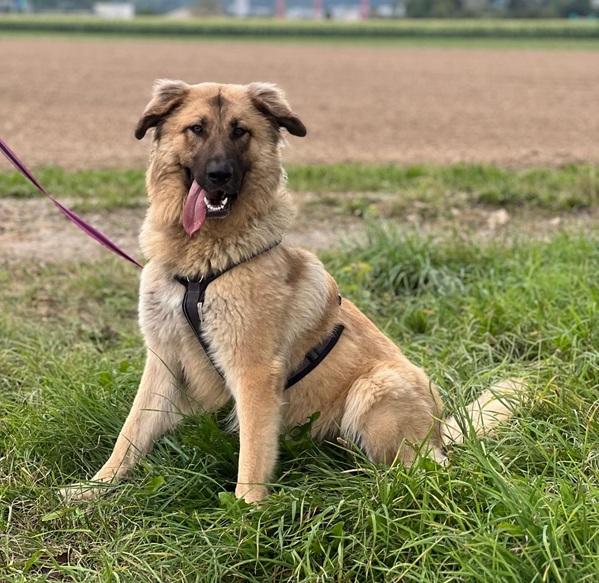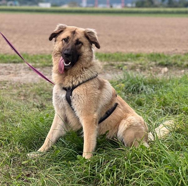 Die wunderbare Mastin x Schäfer Mischlingshündin Lori wurde am 22.10.2023 geboren und sie hat eine Schulterhöhe von stattlichen 70 cm.