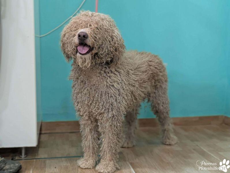 Lukas, ein Spanischer Wasserhund, ist mit seiner fröhlichen, verspielten Art und seiner puren Lebensfreude ein wahrer Sonnenschein. Als typischer Vertreter seiner Rasse ist er besonders anhänglich und liebt es, ausgiebig zu kuscheln. Nähe und Streicheleinheiten genießt er in vollen Zügen. Lukas ist neugierig und hat eine hohe Auffassungsgabe. Deshalb wären Hundesport und gemeinsame Beschäftigungen, bei denen Kopf und Körper gefordert werden, ideal für den jungen Rüden. Durch sein spezielles Fell ist Lukas für viele Menschen mit Hundeallergie gut geeignet – also rundherum ein perfekter Begleiter fürs Leben.