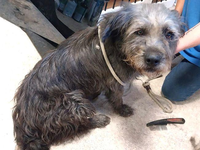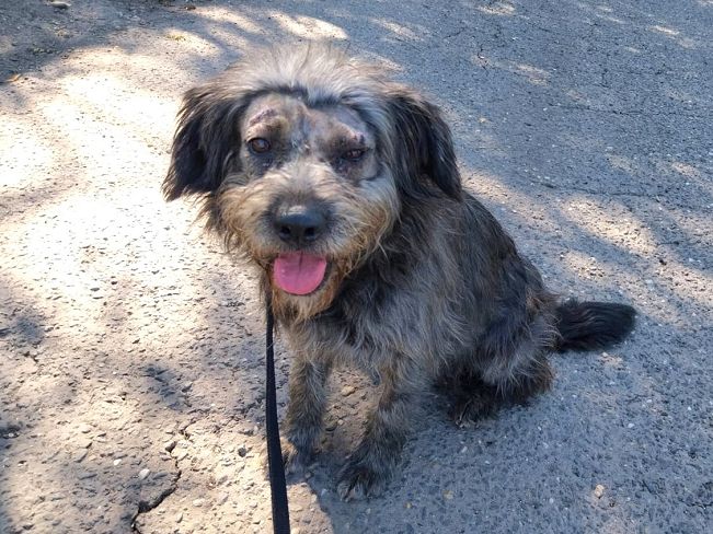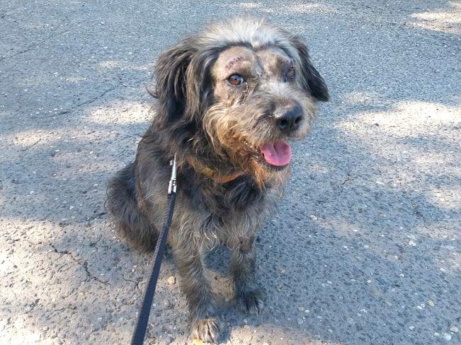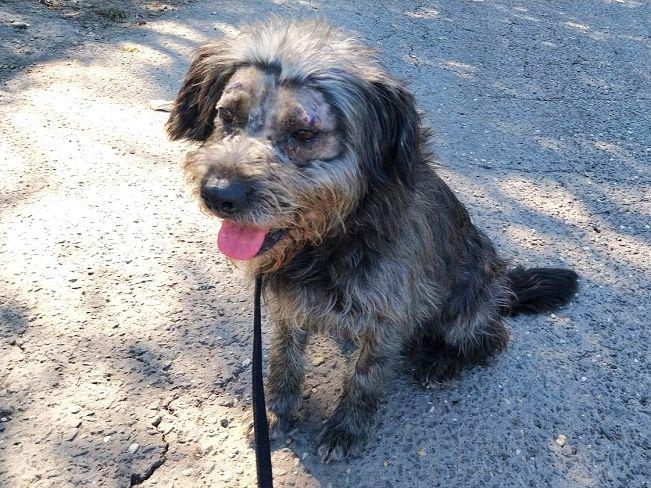 Die laut Registrierung im Januar 2022 geborene Maja hat eine ungewöhnliche Geschichte. Seit Anfang September 2025 versucht das Team des Tierheims einen ängstlichen Hund einzufangen und hat zu diesem Zweck eine Lebendfalle aufgestellt. Mitte September saß dann Maja in der Falle. Auch sie war immer wieder auf der Straße gesehen worden. Da sie einen registrierten Chip hatte, konnte die Heimleiterin Kata den Besitzer kontaktieren. Dieser zeigte aber kein Interesse, seinen Hund aus dem Heim abzuholen. Und Kata und ihr Team waren auch froh darüber, hatten sie doch inzwischen unter dem langen Fell am Kopf eitrige Wunden (vermutlich sind es Hundebisse) entdeckt, die unbedingt behandelt gehörten. Dies geschah dann auch gleich und nachdem nun alles „freigelegt“, gesäubert und genäht ist, wartet Maja nun in ihrem temporären „Schimpansenlook“ noch auf das große Glück, ein tolles Zuhause zu finden.