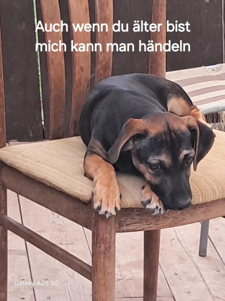 Mausi ist eine kleine Hündin, die absolut menschenfreundlich und verschmust ist. Mausi wird aber nicht sofort auf eine fremde Person zulaufen, sondern genau abwarten, überlegen, soll ich oder soll ich nicht. Also keine Hündin die sofort auf jeden losstürmt um sie zu begrüßen. Sie baut erst mal vertrauen auf, In Mausi steckt wohl etwas Dackel mit drin, wobei ihre Beinchen normal sind.