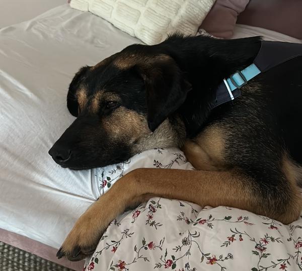 Autofahren ist für ihn momentan noch schwierig, da er zu Übelkeit neigt. Das Ein- und Aussteigen macht er inzwischen schon super und das Fahren wird weiterhin geübt. Mito ist mit anderen Hunden freundlich und fordert gerne zum Spielen auf. Katzen scheint er eher zum Jagen spannend zu finden. Bei kleinen Kindern zeigte er sich interessiert und vorsichtig, es gab aber bisher noch wenig Kontakt. Für Mito wäre eine ruhige, naturnahe Umgebung wünschenswert, da viele Reize an der Strasse für ihn anspruchsvoll sind. In der Wohnung reagiert er entspannt auf Umweltreize von draussen. Er ist ein wunderbarer Kerl, der bereits nach wenigen Wochen auftaut, gerne lernt und es unglaublich geniesst, wenn man Zeit mit ihm verbringt."