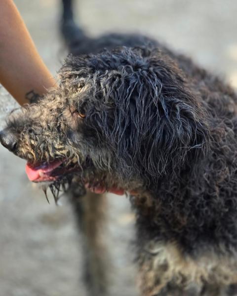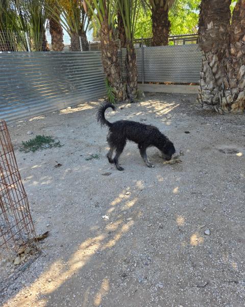 Ein aktiver, fröhlicher Junghund, der, wenn er mal aus dem Zwinger kommt, erstmal alles auf einmal absuchen und abschnüffeln muss. Er ist eine Mischung - wahrscheinlich von einem spanischen Wasserhund, sieht immer aus, als wenn er nass wäre - darum auch der Name “Mojito”.