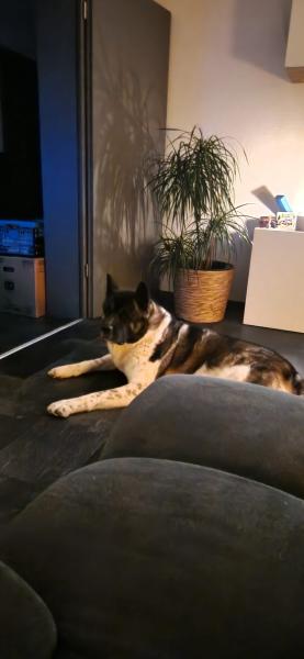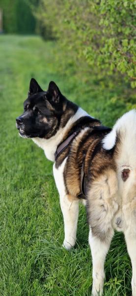 Es ist ein American Akita rüde. Er ist sehr lieb, mag Kinder und ist sehr anhänglich. Er hört gut man kann ihn von der Leine abmachen. Er ist jetzt 3 geworden und gechippt und Tollwut geimpft für 3 Jahre.