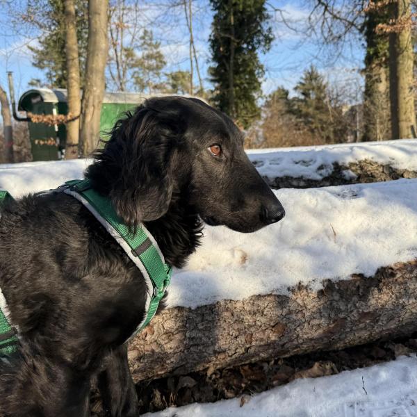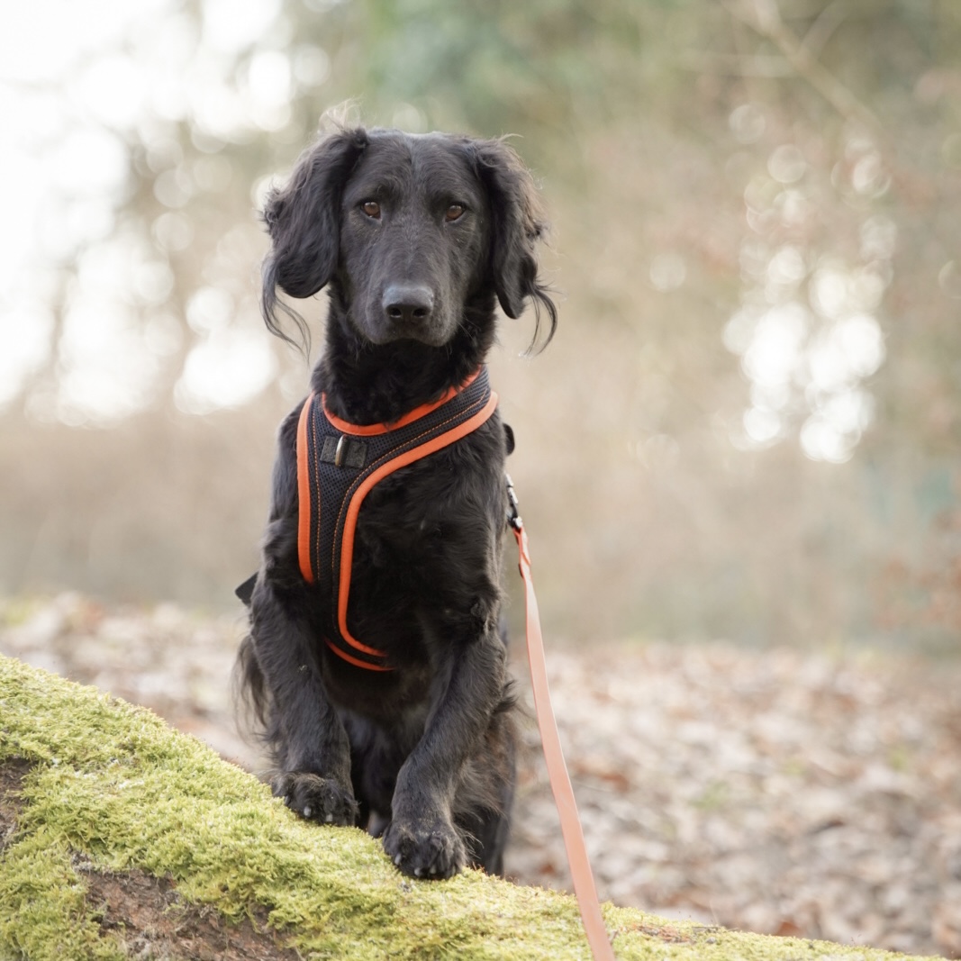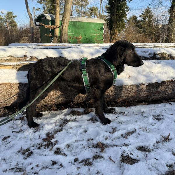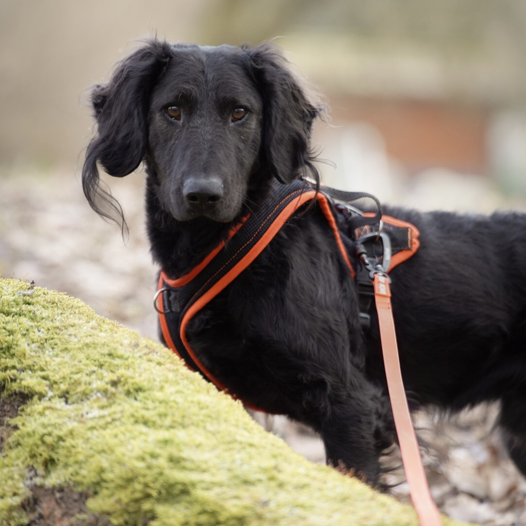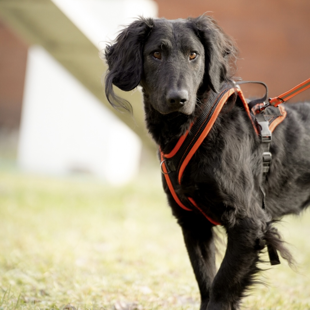 Negro läuft sehr gut an der lockeren Leine, er orientiert sich an den Menschen und möchte einfach gefallen. Mit Menschen ist er noch etwas vorsichtig, er wird aber immer mutiger. Er liebt es etwas im Maul herumzutragen.