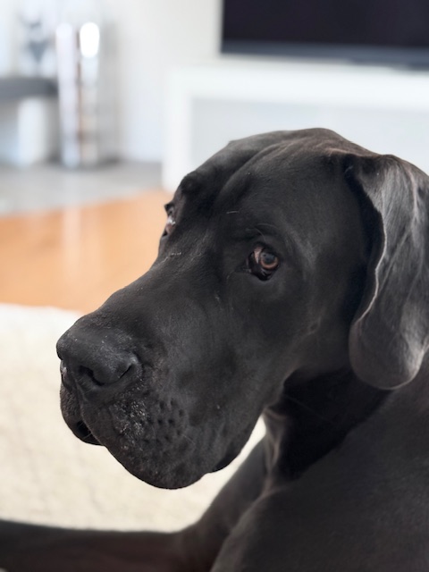 Leinenführigkeit braucht noch etwas , doch der Grundstein ist gelegt. Er hört auf Fuss, Sitz und kennt seinen Platz, wenn gekocht wird.