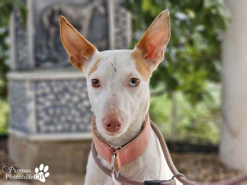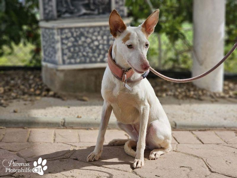 Mit ihrer fröhlichen und ausgeglichenen Art erobert Nivea sofort die Herzen. Die bezaubernde Podenca begegnet ihrer Umwelt mit neugierigen Augen und einem offenen Wesen. Nivea liebt die Nähe zu ihren Menschen, genießt jede Streicheleinheit und zeigt sich unglaublich verschmust und anhänglich – sie möchte einfach gefallen. Mit anderen Hunden ist sie sozial und absolut gruppentauglich. Sie spielt gerne, bleibt dabei jedoch stets freundlich und respektvoll. Liebevoll, zutraulich und voller Wärme – eine echte Traumhündin, die nur darauf wartet, endlich anzukommen und ihre Menschen glücklich zu machen.