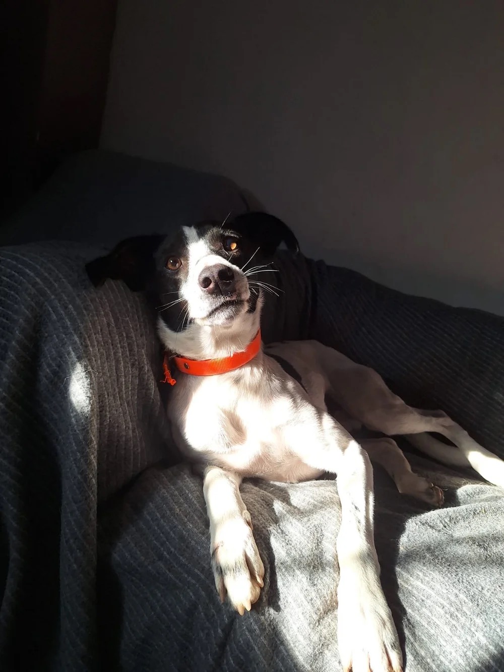 Er ist bereits an das Laufen an der Leine gewöhnt und macht das sehr gut. Er genießt Spaziergänge und lässt sich gerne von seinen Menschen führen. Zu Hause ist er eher ruhig und entspannt.