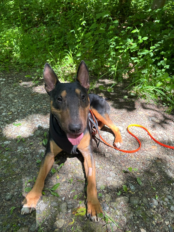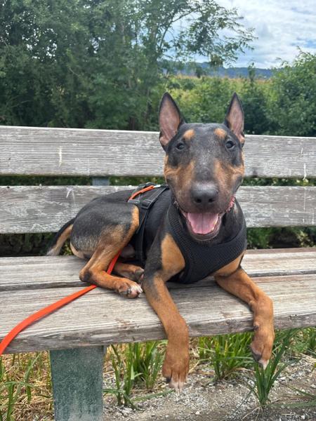 Pancho (10.07.22) ist ein junger, sehr freundlicher Bullterrier, der am liebsten überall dabei sein möchte. Mit seinem markanten Kopf, den ausdrucksvollen Augen und seinem lebhaften Wesen ist er ein echter Blickfang. Er ist ein aufgeschlossener, fröhlicher Hund, der andere Hunde mag und rassetypisch gerne anfänglich überschwänglich ist. Mit seinem charmanten Wesen ist er ein richtiger Bullibub, der das Leben mit viel Energie und Freude geniesst.