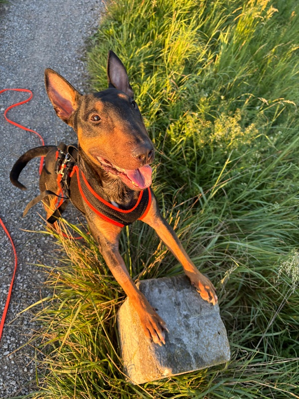 Pancho (10.07.22) ist ein junger, sehr freundlicher Bullterrier, der am liebsten überall dabei sein möchte. Mit seinem markanten Kopf, den ausdrucksvollen Augen und seinem lebhaften Wesen ist er ein echter Blickfang. Er ist ein aufgeschlossener, fröhlicher Hund, der andere Hunde mag und rassetypisch gerne anfänglich überschwänglich ist. Mit seinem charmanten Wesen ist er ein richtiger Bullibub, der das Leben mit viel Energie und Freude geniesst.