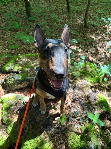 Pancho (10.07.2022) ist ein junger, sehr freundlicher Bullterrier, der am liebsten überall dabei sein möchte. Mit seinem markanten Kopf, den ausdrucksvollen Augen und seinem lebhaften Wesen ist er ein echter Blickfang. Er ist ein aufgeschlossener, fröhlicher Hund und reagiert rassetypisch gerne anfänglich überschwänglich. Mit seinem charmanten Wesen ist er ein richtiger Bullibub, der das Leben mit viel Energie und Freude geniesst.